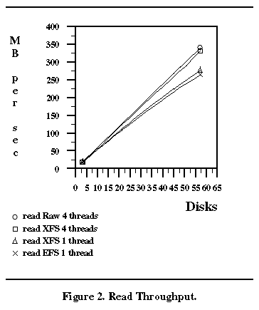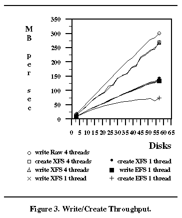In this section we present results demonstrating the scalability and performance of the XFS file system. These results are not meant as a rigorous investigation of the performance of XFS, but only as a demonstration of XFS's capabilities. We are continuing to measure and improve the performance of XFS as development of the file system proceeds.